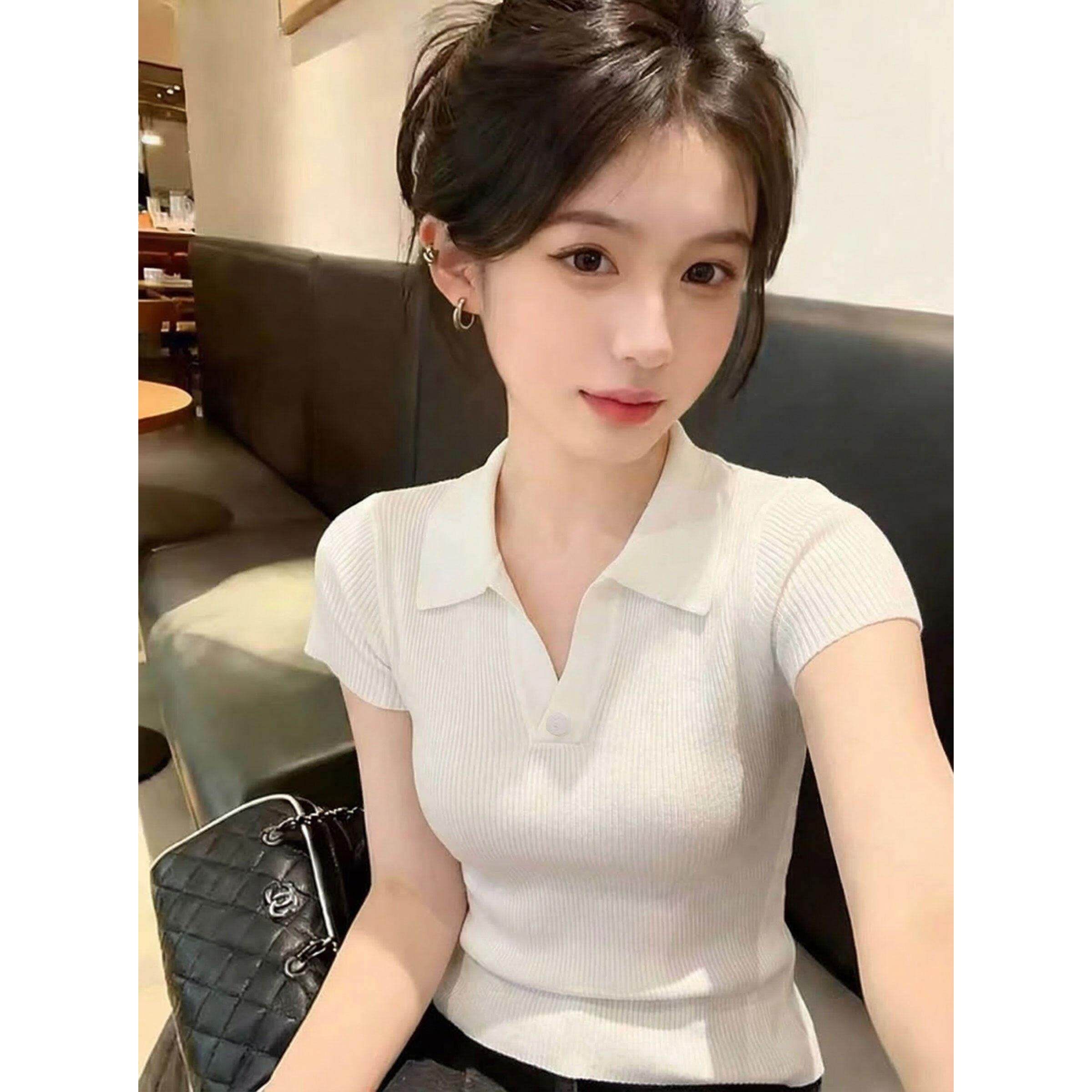 polo领针织衫高级感灰色短袖t恤女2026新款夏季修身时尚洋气上衣