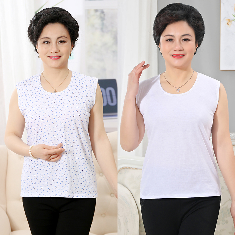 夏季中老年人背心女纯棉圆领内衣妈妈全棉汗衫大码老太太背心薄款
