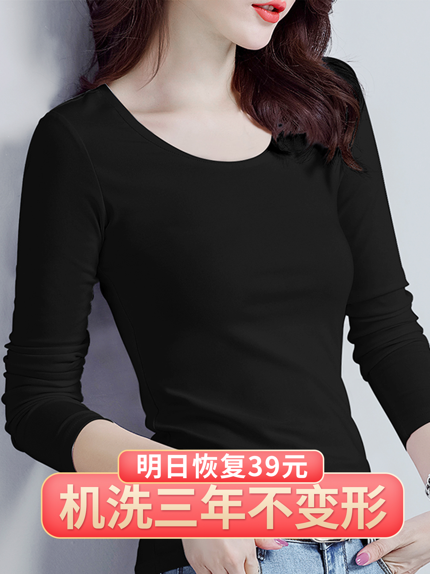纯棉黑色打底衫女长袖薄款T恤2025秋冬内搭秋衣加绒加厚保暖上衣