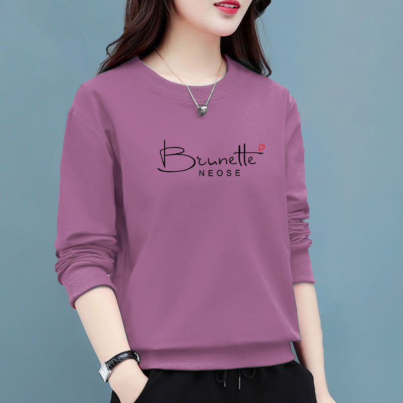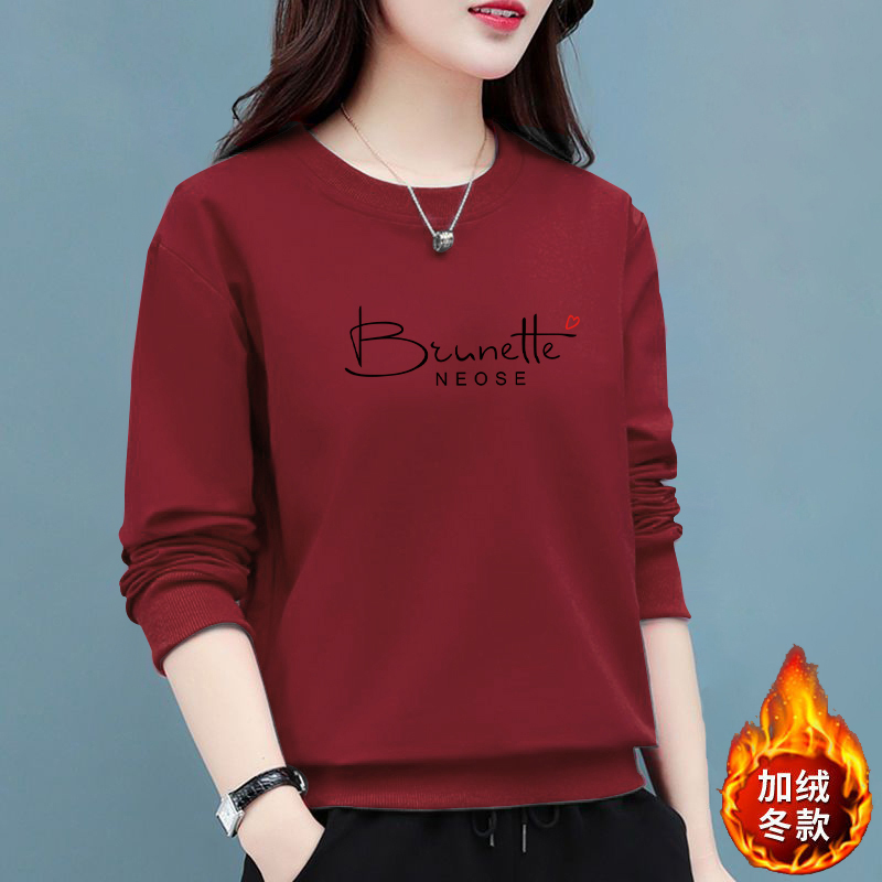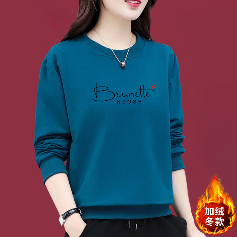 秋冬季圆领卫衣女士加绒加厚长袖洋气保暖打底衫大码宽松显瘦上衣