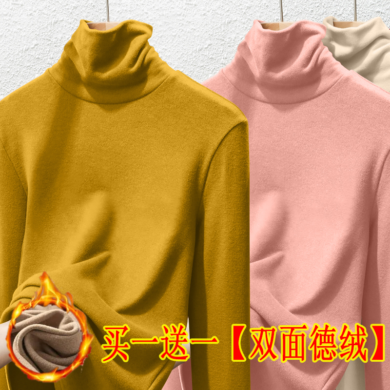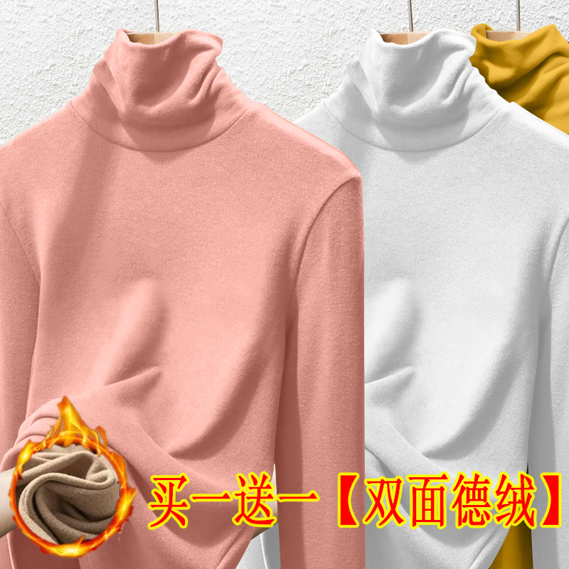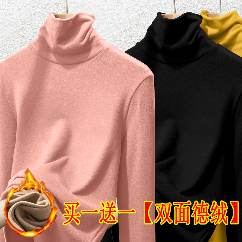 双面德绒高领打底衫女内搭秋冬新款加绒加厚大码保暖内衣长袖上衣