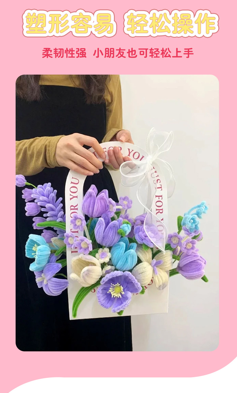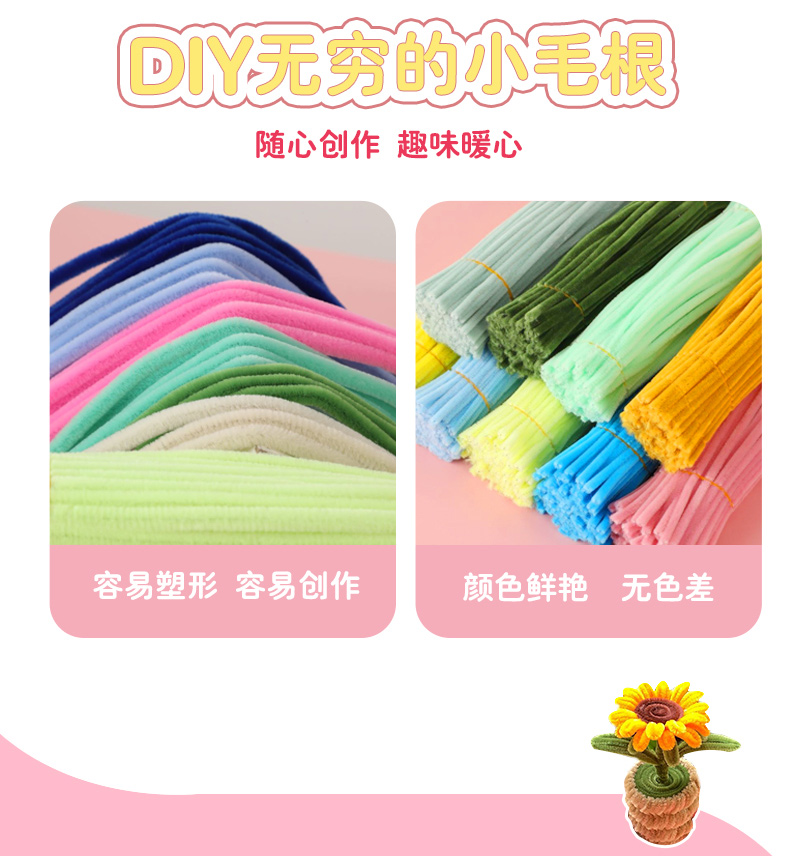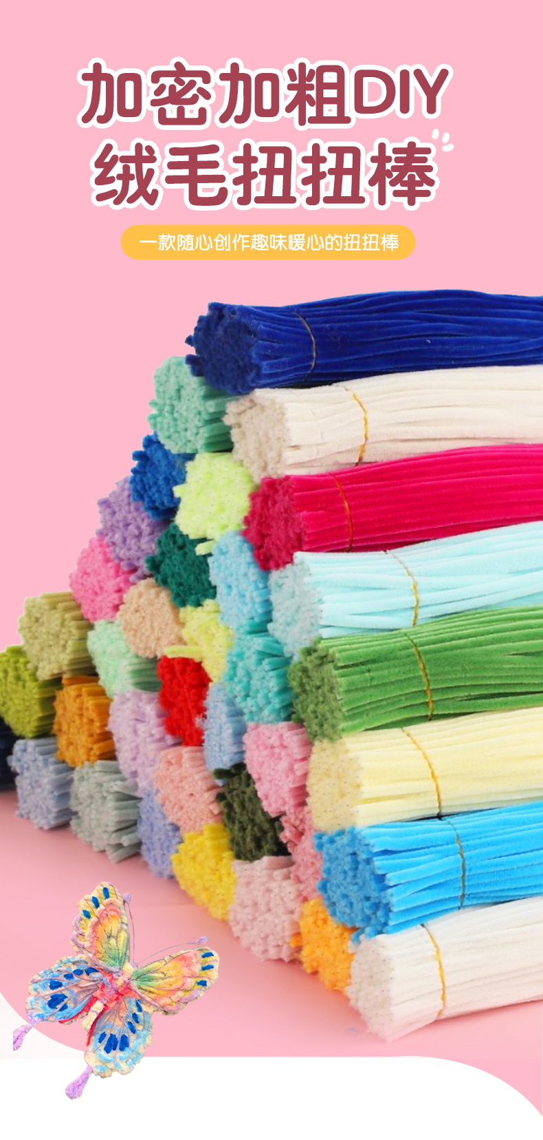 安绕加密扭扭棒自制花束diy材料包儿童益智手工制作特密加绒毛条