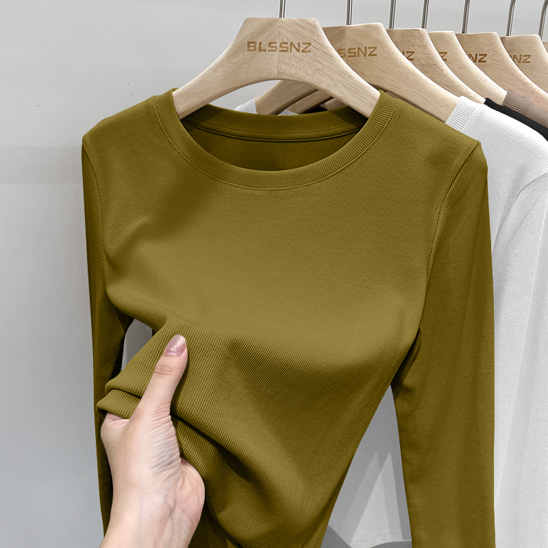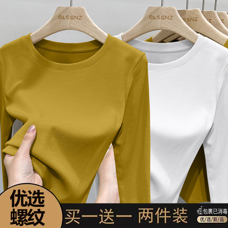 圆领打底衫女内搭春秋薄款2025新款外穿秋衣修身遮肚长袖t恤上衣