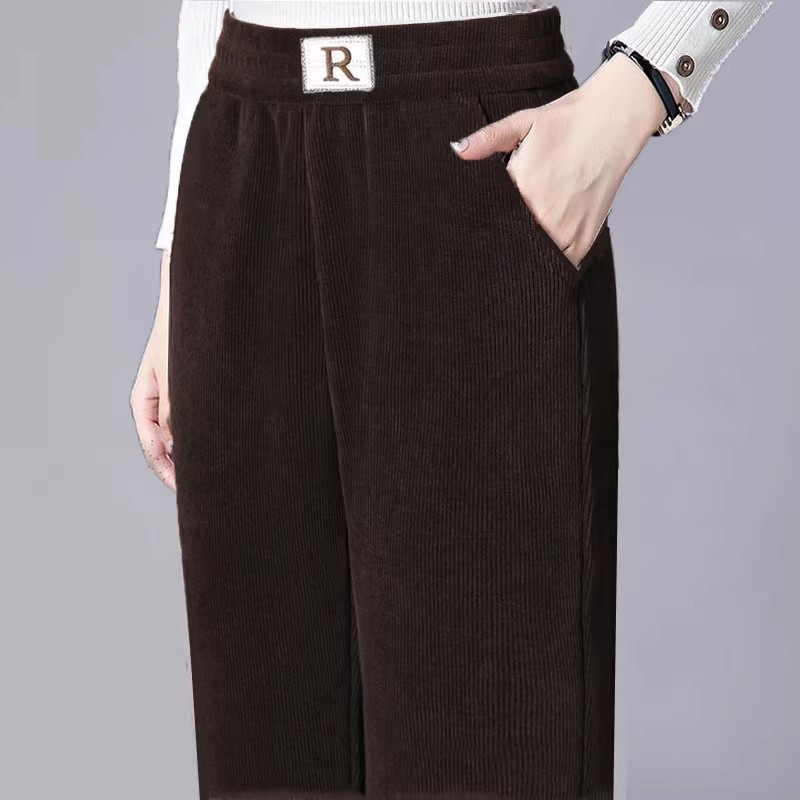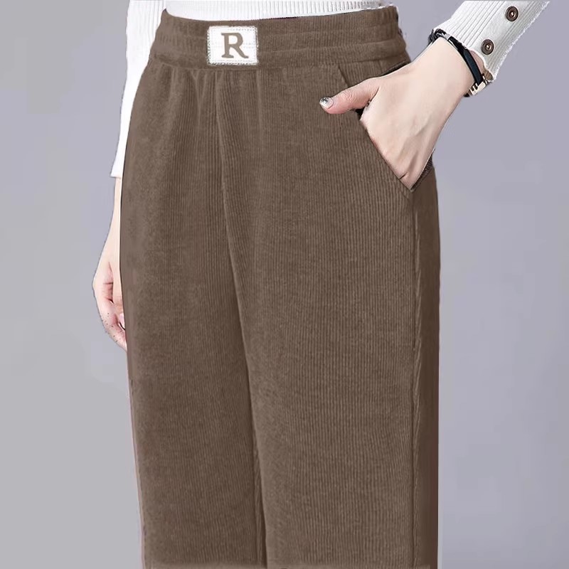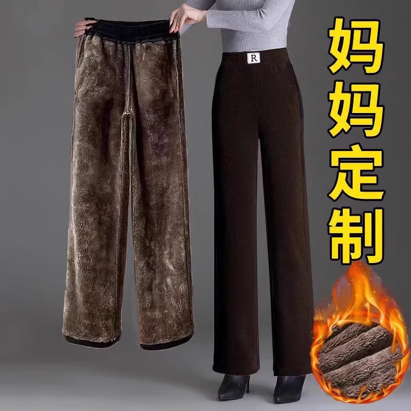 妈妈裤子加绒加厚中老年人女大码直筒欧棉绒阔腿裤冬中年休闲女裤