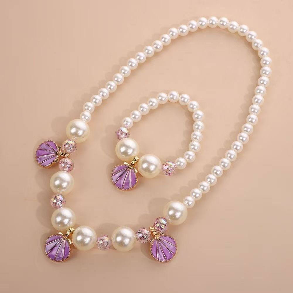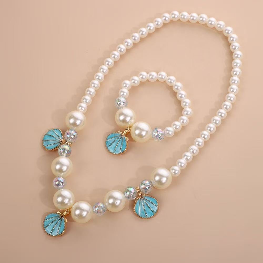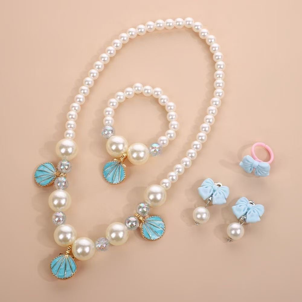 儿童贝壳项链配饰蝴蝶结可爱首饰公主串珠手链女孩戒指套装女童