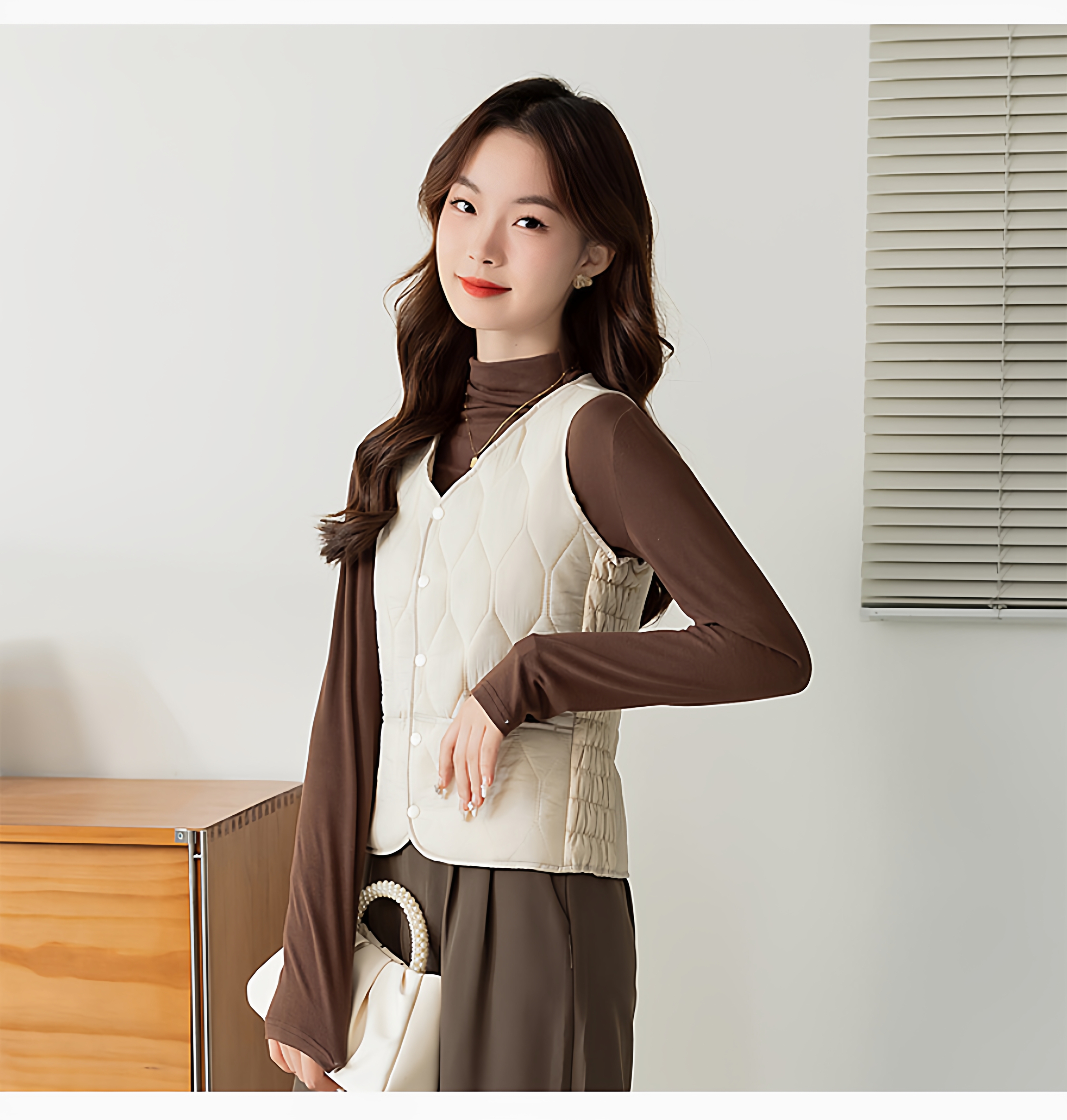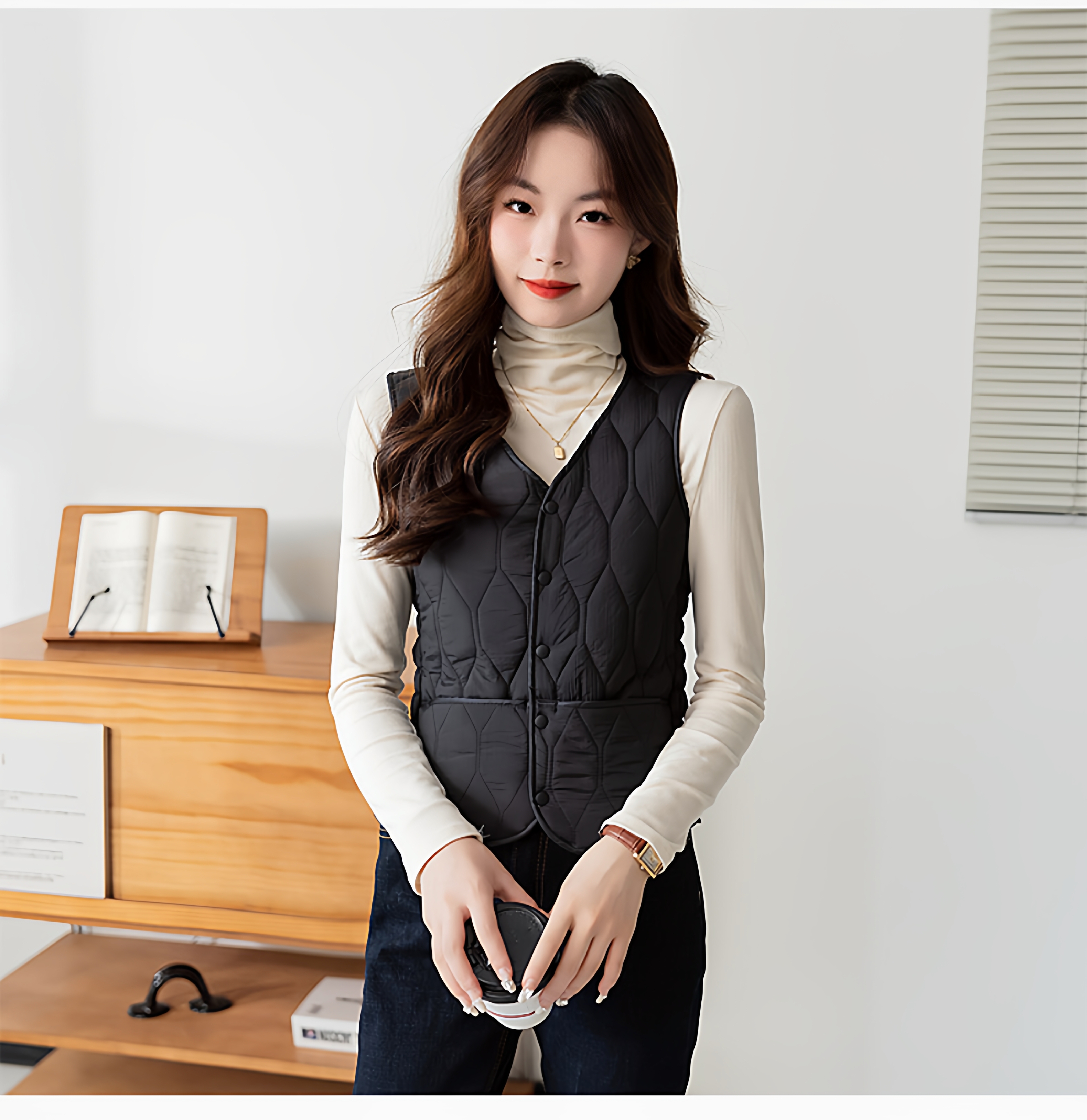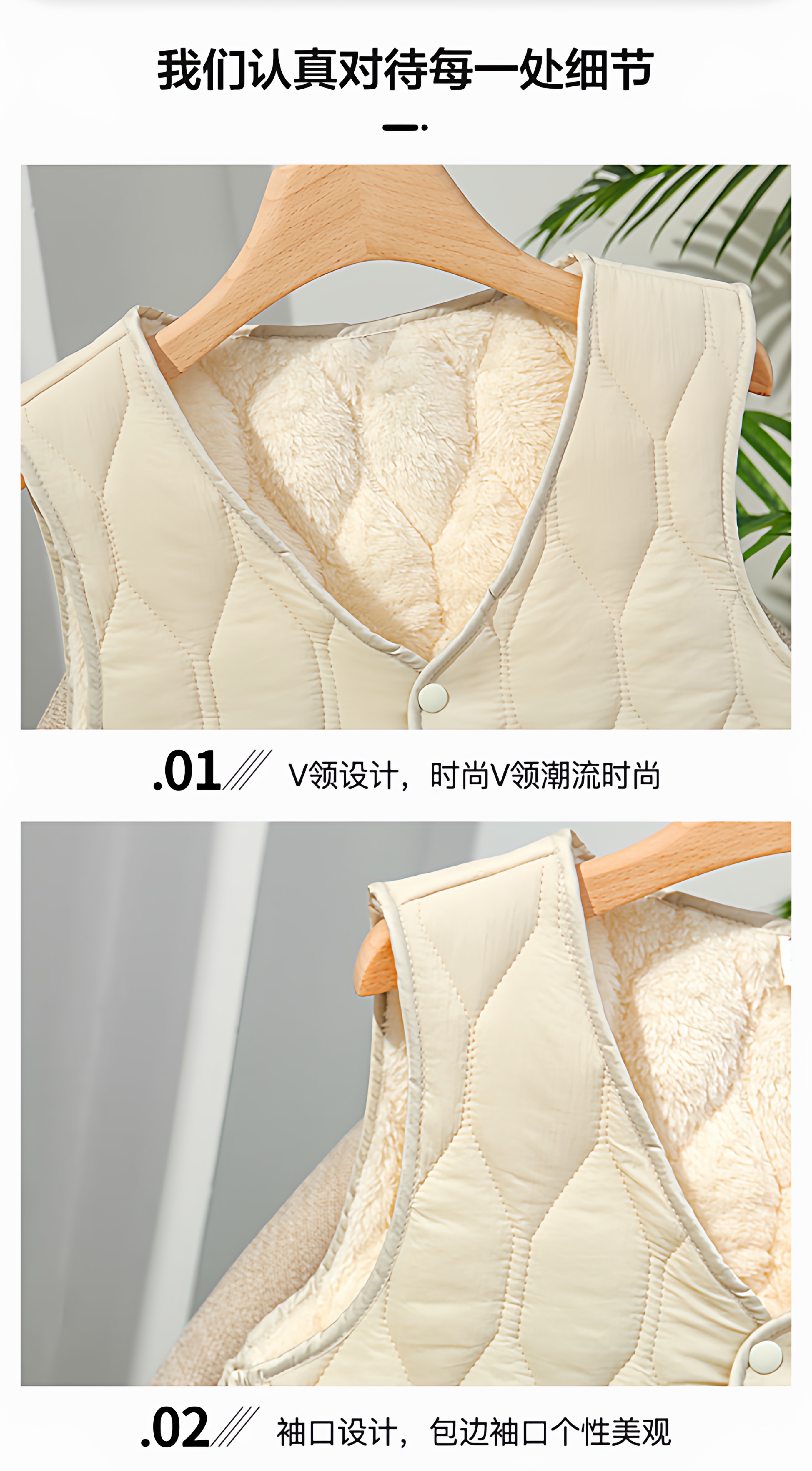 2025新款秋冬羽绒棉马甲女加绒加厚保暖短款V领坎肩修身百搭内胆