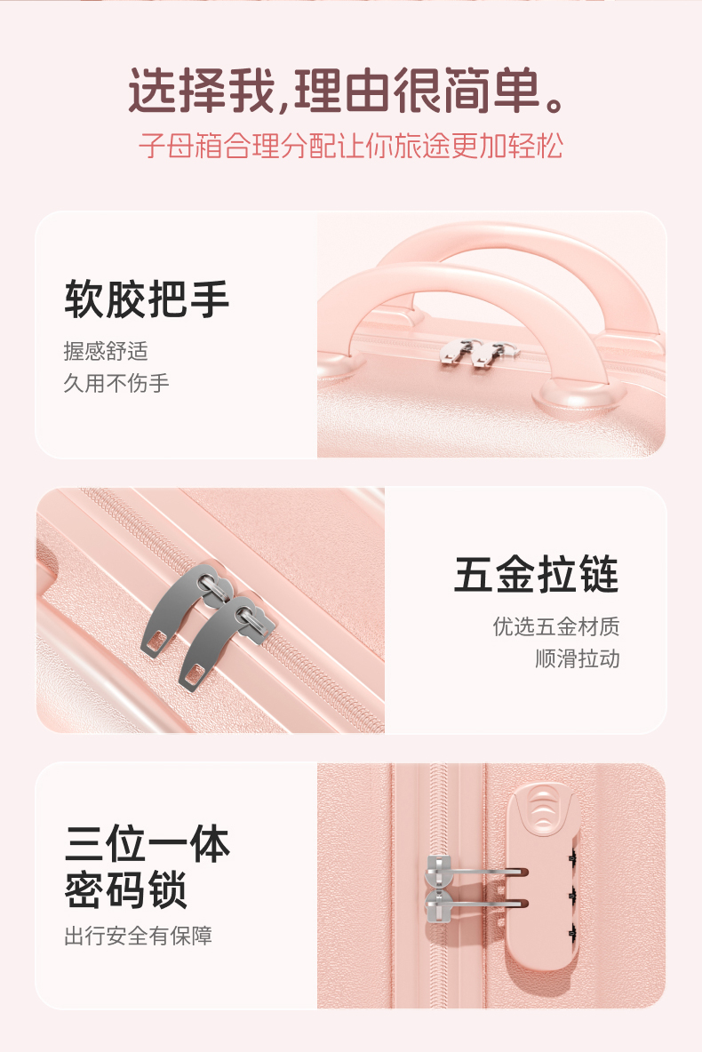 行李箱女2024新款拉杆箱小型20寸登机子母箱旅行密码皮箱子男耐用
