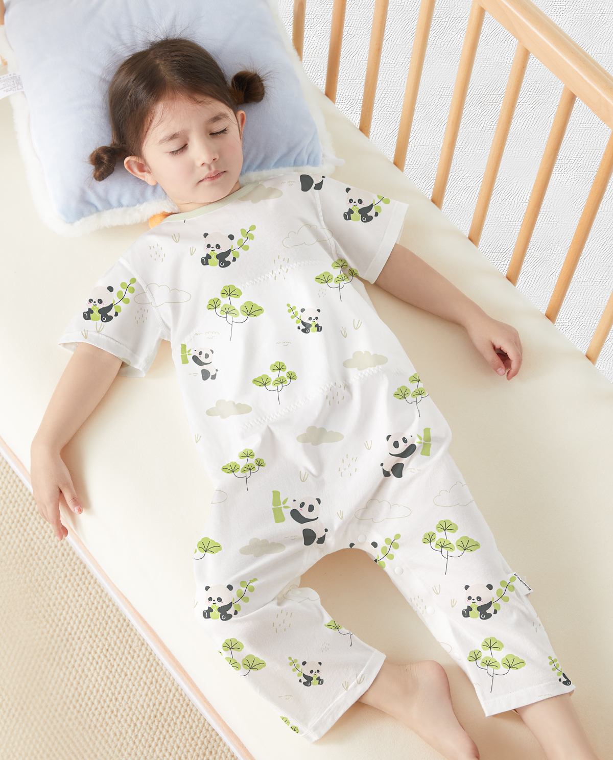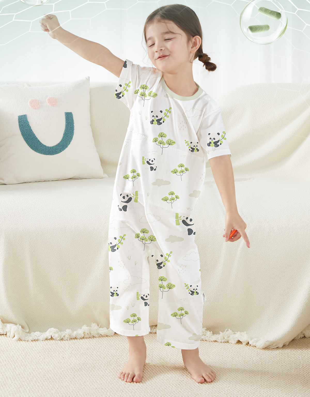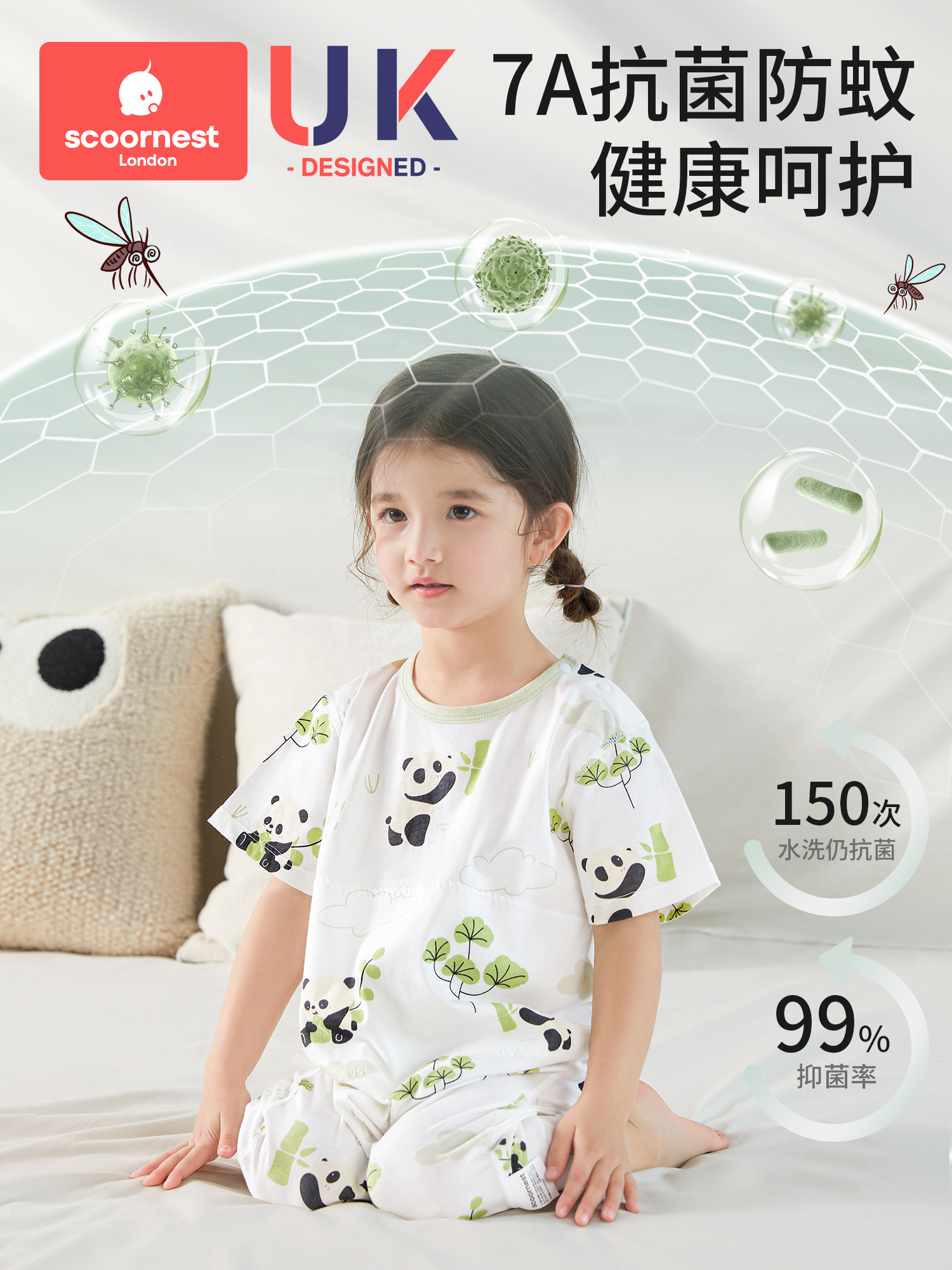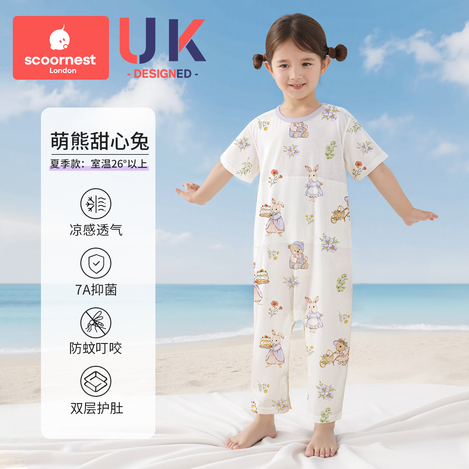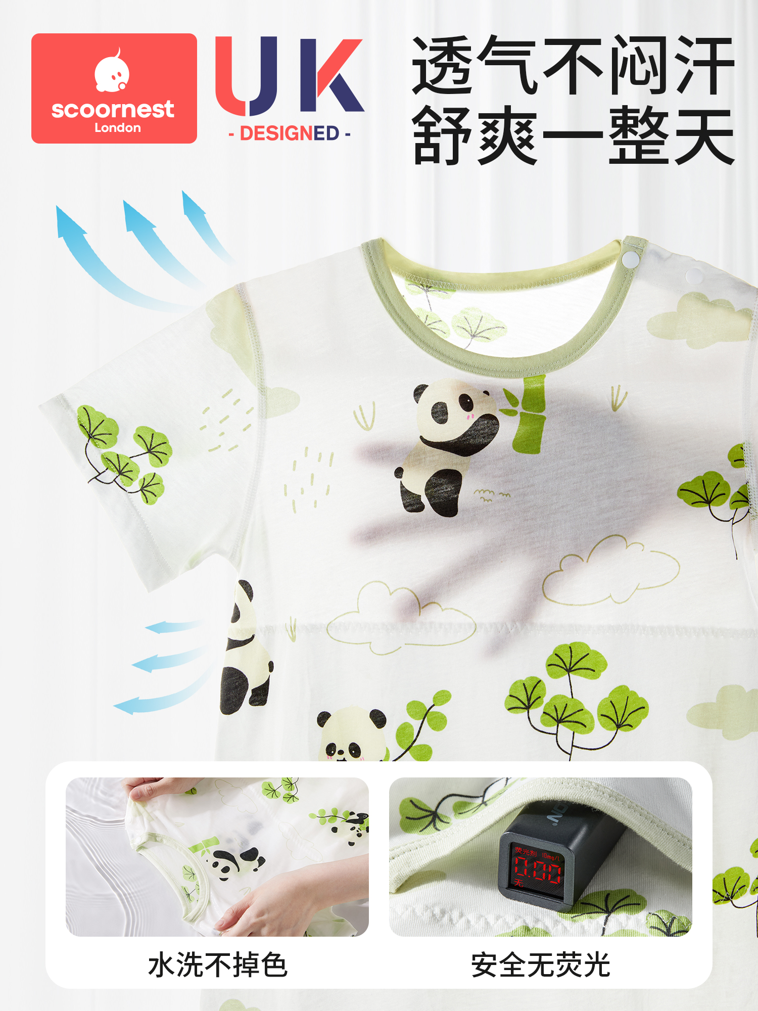 科巢儿童连体睡衣纯棉夏季薄款2025新款男孩女童宝宝家居服短袖