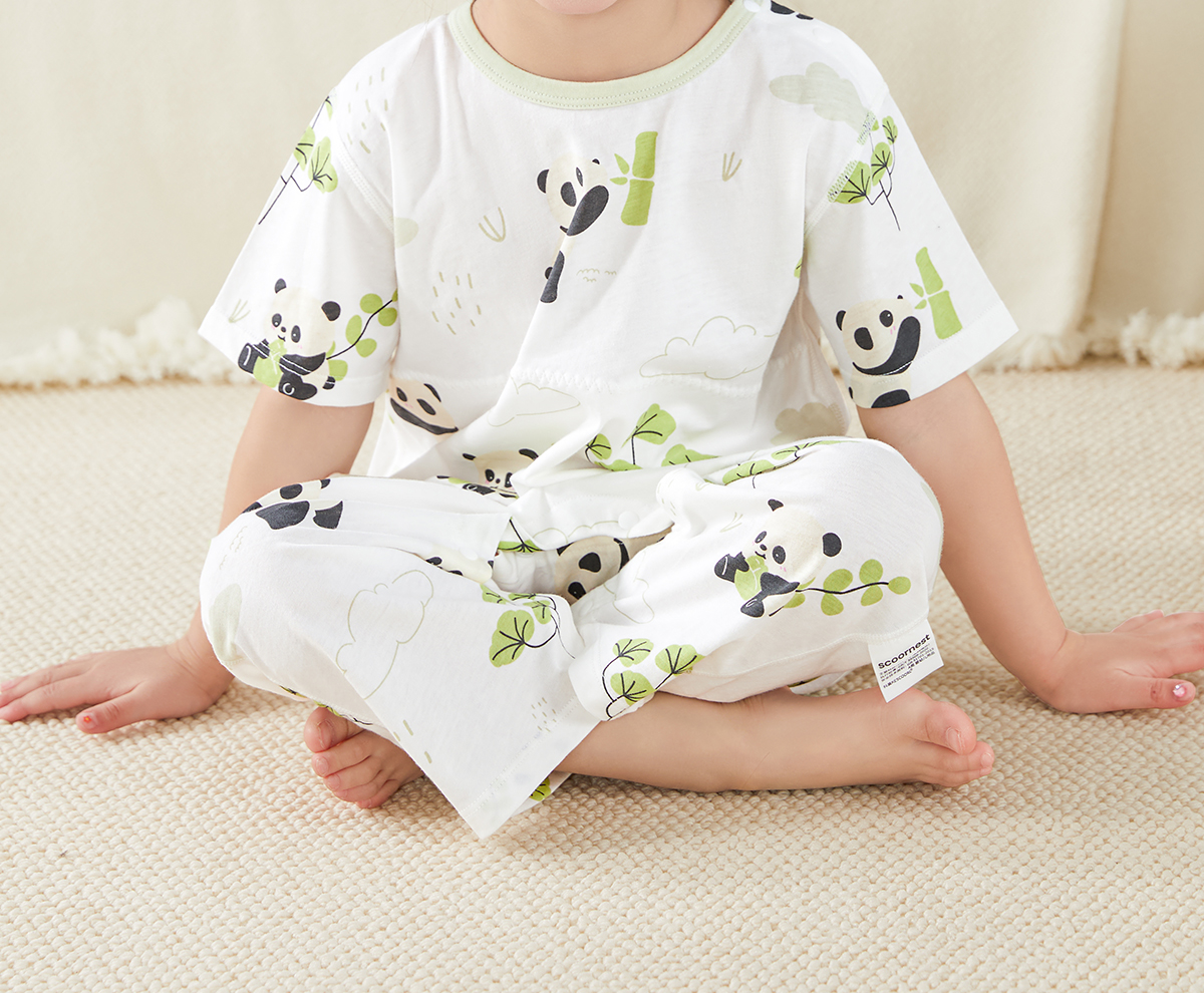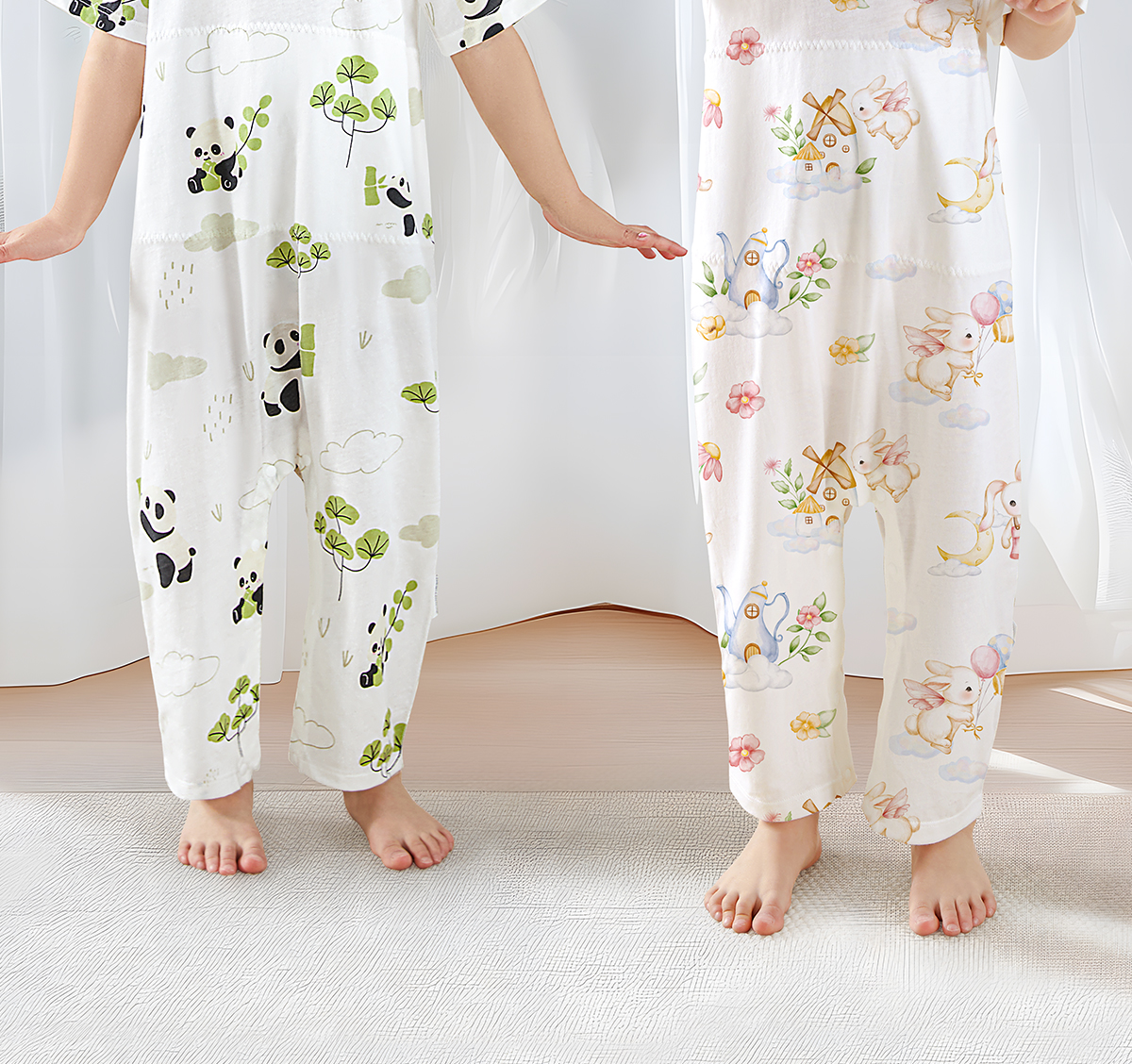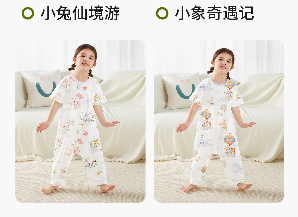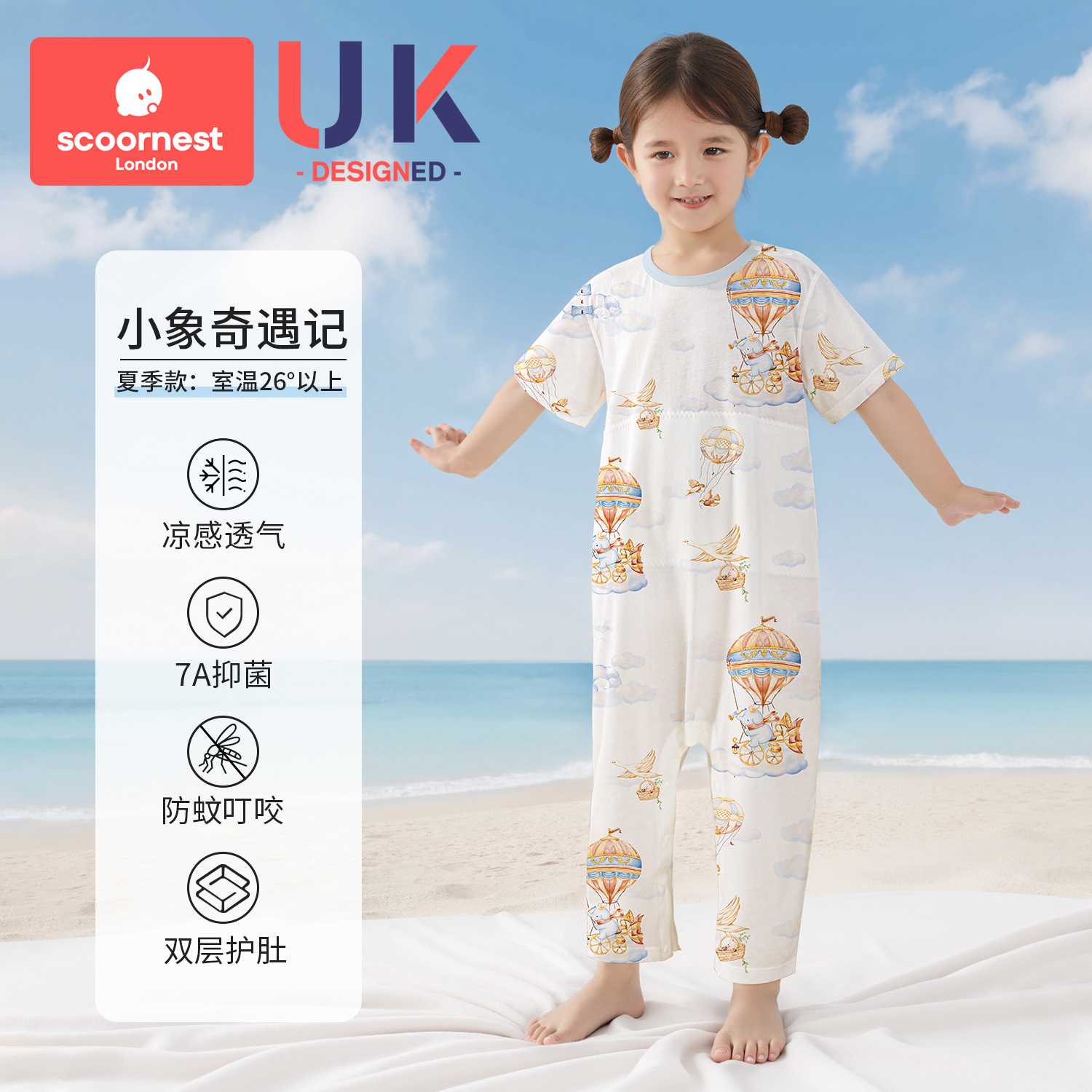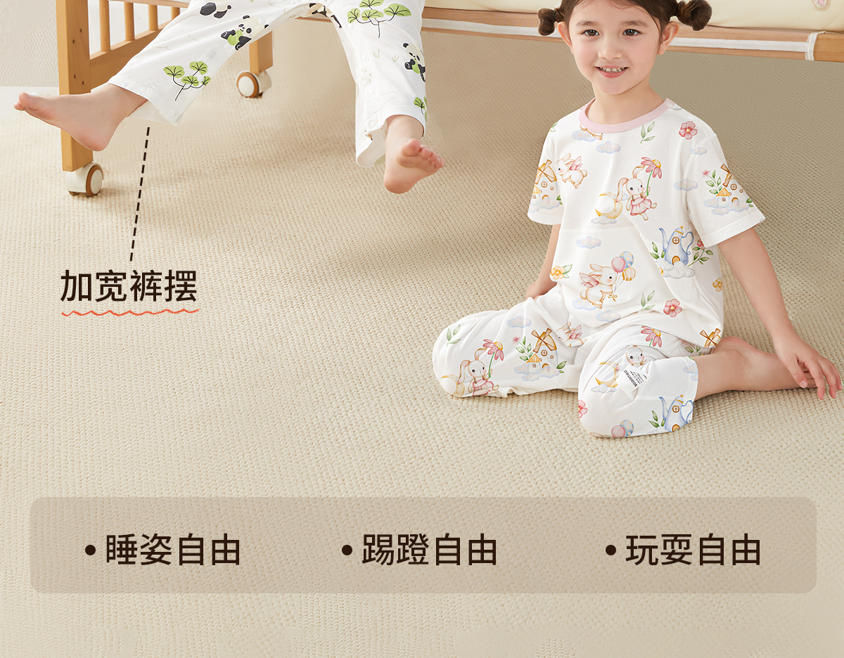 科巢儿童连体睡衣纯棉夏季薄款2025新款男孩女童宝宝家居服短袖
